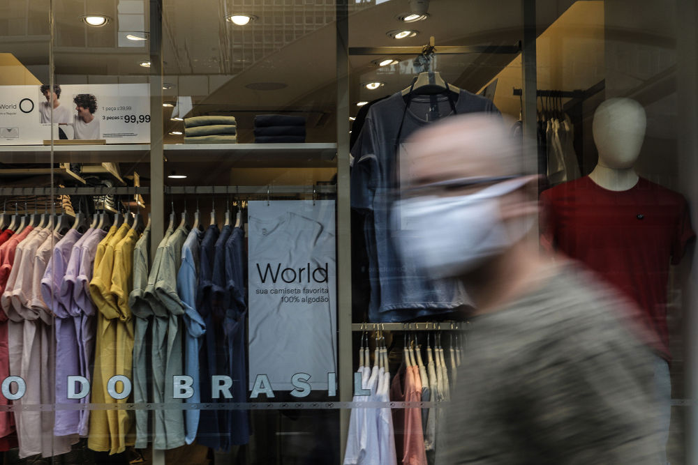 2020年9月1日,行人从巴西圣保罗市一家服装店外走过。(新华社发,拉赫尔·帕特拉索摄)