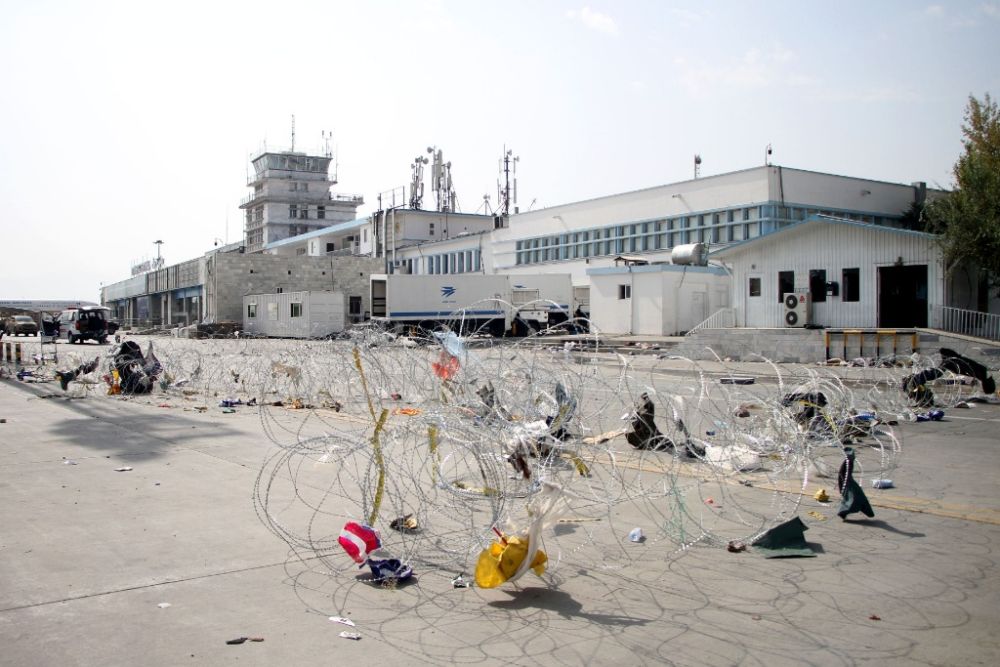 这是8月31日在阿富汗喀布尔国际机场拍摄的防护网。(新华社发,塞夫拉赫曼·萨菲摄)